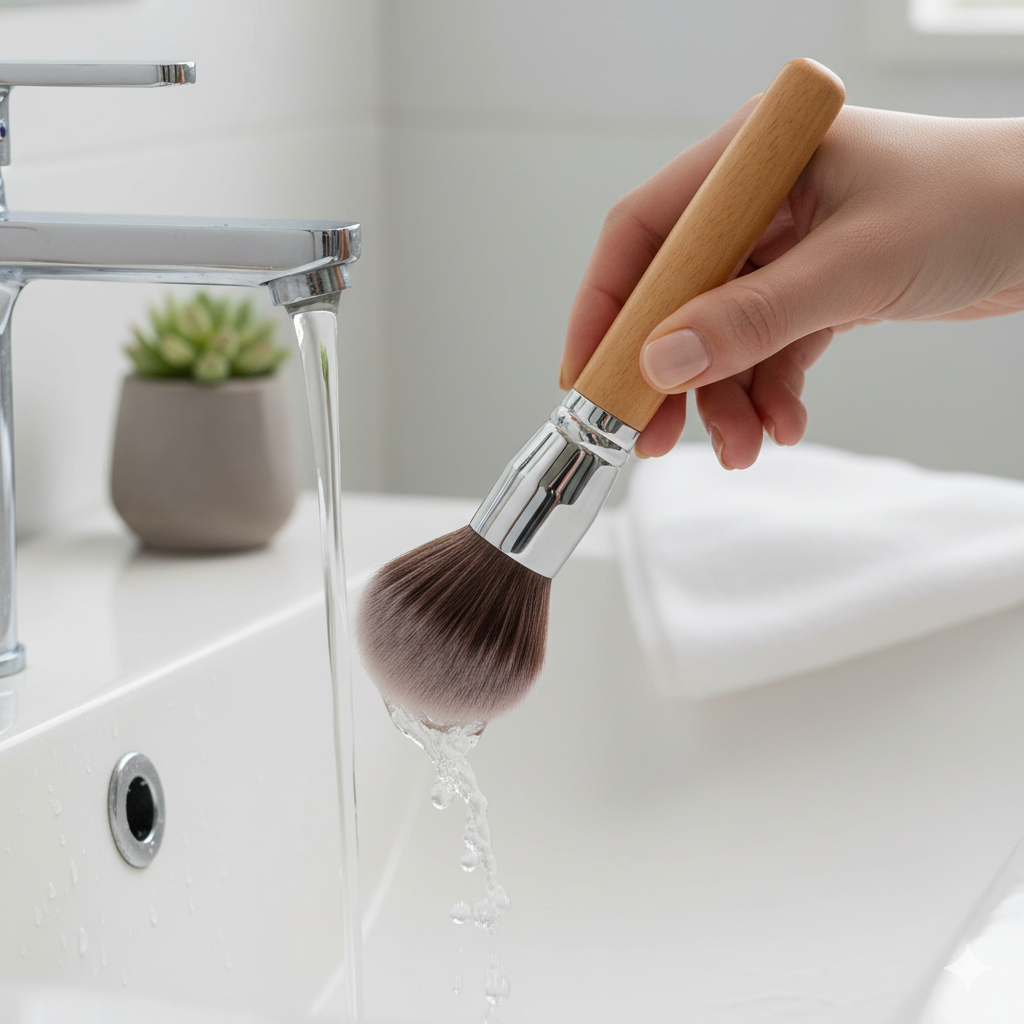 - Wipe brush handles weekly with micellar water or gentle wipes.
